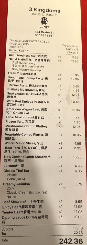3 Kingdoms Hot Pot is a Chinese hot pot restaurant located in Mountain View, CA. With a cozy and inviting ambiance, it offers a wide selection of fresh ingredients, including seafood, red meat, tofu, vegetables, and noodles. Customers praise the restaurant for its small-portion dishes, perfect for those with smaller appetites, and its reasonable prices ranging from $20 to $30 per person. The staff is friendly and helpful in selecting the best options. The broth options are varied, with highlights being the spicy mala house special butter and flavorful chicken and pork bases. Dishes are beautifully plated and of high quality, with a good balance of spice and flavor. The hot pot experience at 3 Kingdoms is described as authentic and not Americanized, with a focus on traditional Chinese flavors and ingredients. Many customers appreciate the attention to detail in both ingredients and preparation, making it a recommended spot for those who enjoy quality dining experiences.